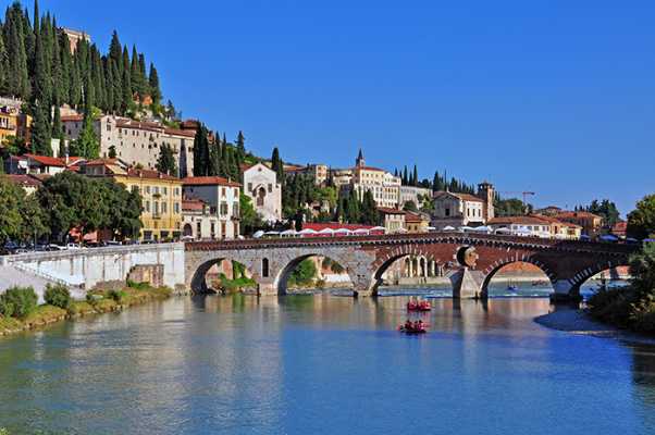 O impacto começa na entrada do centro antigo, pela deslumbrante Ponte Pietra, e a partir de então inicia uma sequência de pontes, palácios e ruas primorosas, repletas de cafés e restaurantes.